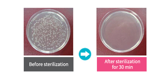 Result of the test by Korea Conformities Laboratories(KCL) shows 99.9% sterilization of E. Coli after 30 minutes.